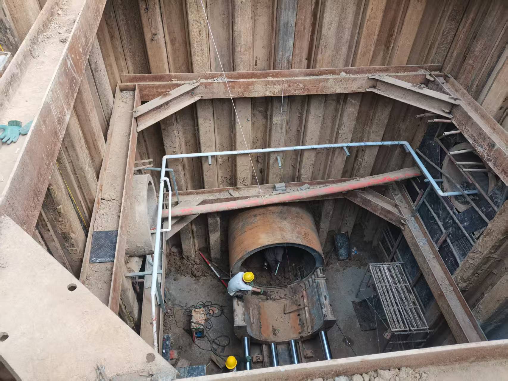 深基坑施工安全风险大,集团公司副总经理、总工程师李营营,工程管理处处长谭臣义亲临现场指导工作,提出诸多问题,现场及时解决,该工程至今为止进展顺利,现在屯田路顶管坑路面柏油面已完成,一体化泵站已安装到位,前池混凝土到5月30日混凝土浇筑全部完成,1.5米入河管道已施工完成,泄压池筏板混凝土完成,入河管完成。